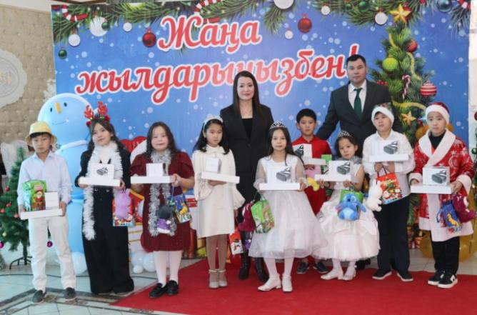 Аудан әкімінің орынбасары Әсел Шайзадақызы балаларды мерекемен құттықтап, оларға зор денсаулық, шаттыққа толы балалық шақ пен жарқын болашақ тіледі. Сондай-ақ, аудан әкімдігінің балаларға арналған жаңа жылдық сыйлықтары мен тәтті тартулар табыстады.
