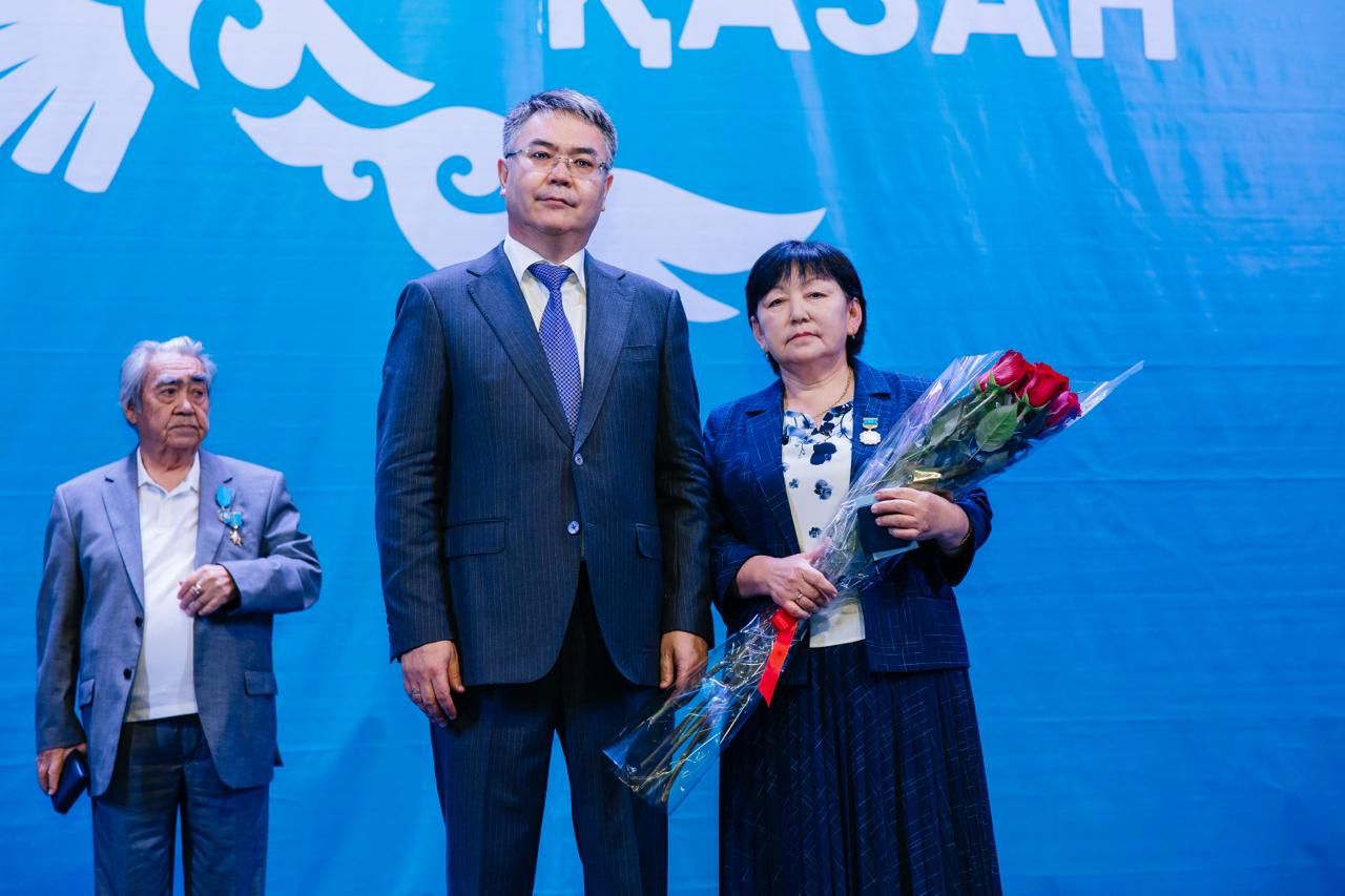 Құрметті марапатты Атырау облысының әкімі Серік Жамбылұлы салтанатты шарада табыстап, төсбелгі иегеріне мемлекеттік қызметтегі қажырлы еңбегі үшін алғыс білдірді.
