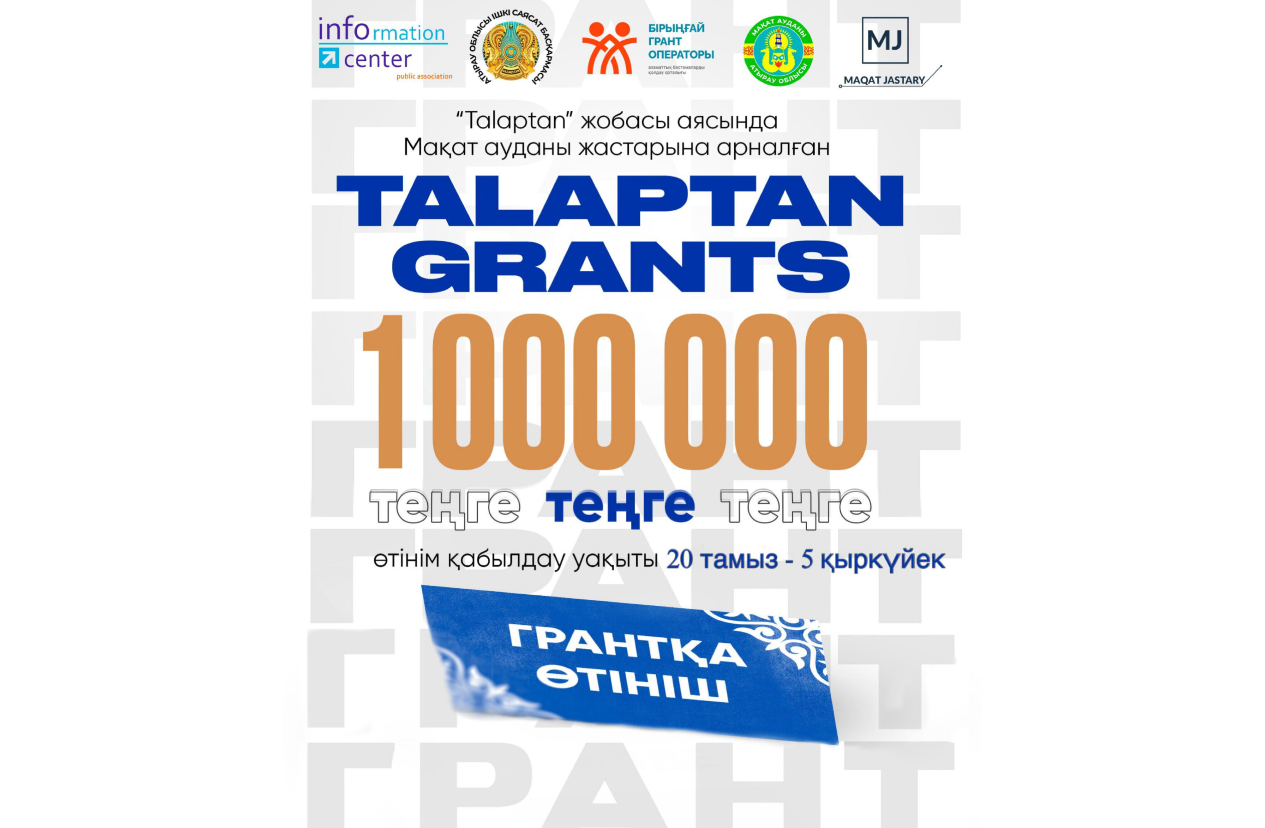 Атырау облыстық Ішкі саясат басқармасының тапсырысы бойынша «Talaptan Maqat» жобасы аясында ауыл жастарына арналған гранттық байқау жарияланды!