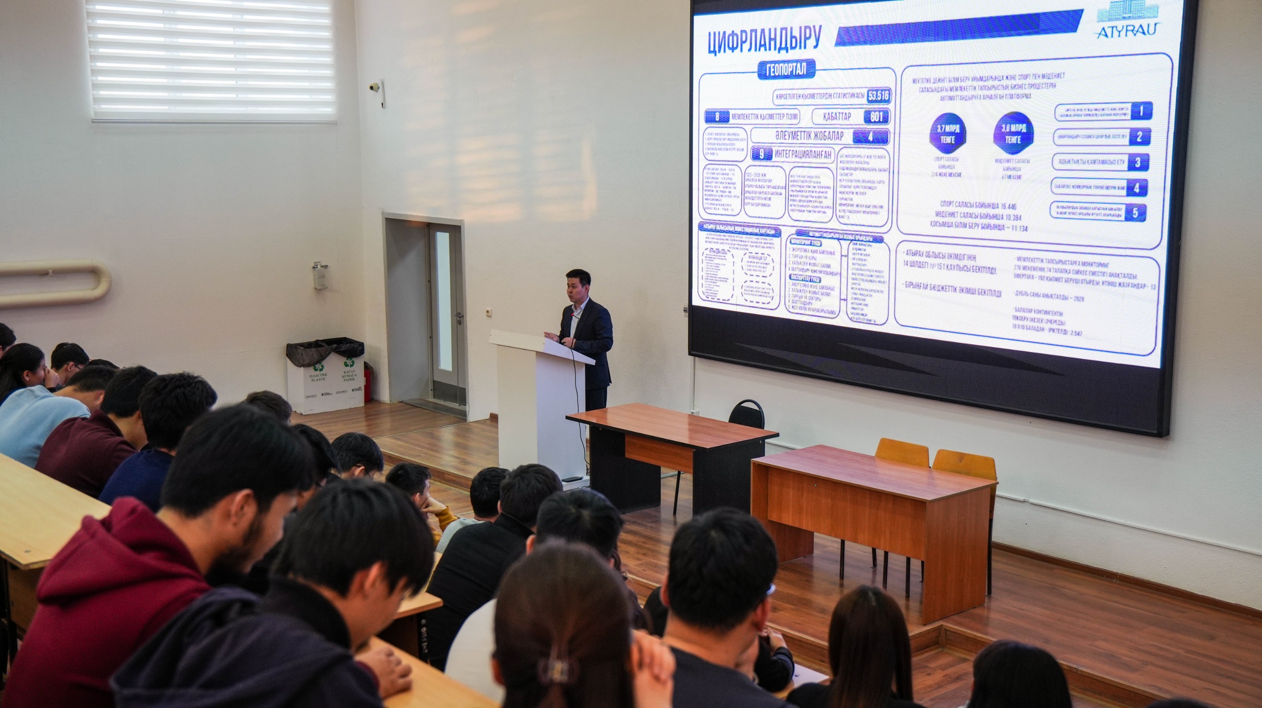 Атырау облысы цифрландыру және архивтер басқармасының басшысы Алмас Өтегенұлы Көпжанов Х.Досмұхамедов атындағы Атырау университетінің «Физика, математика және ақпараттық технологиялар» факультетінің студенттеріне қонақ дәріс өткізді.