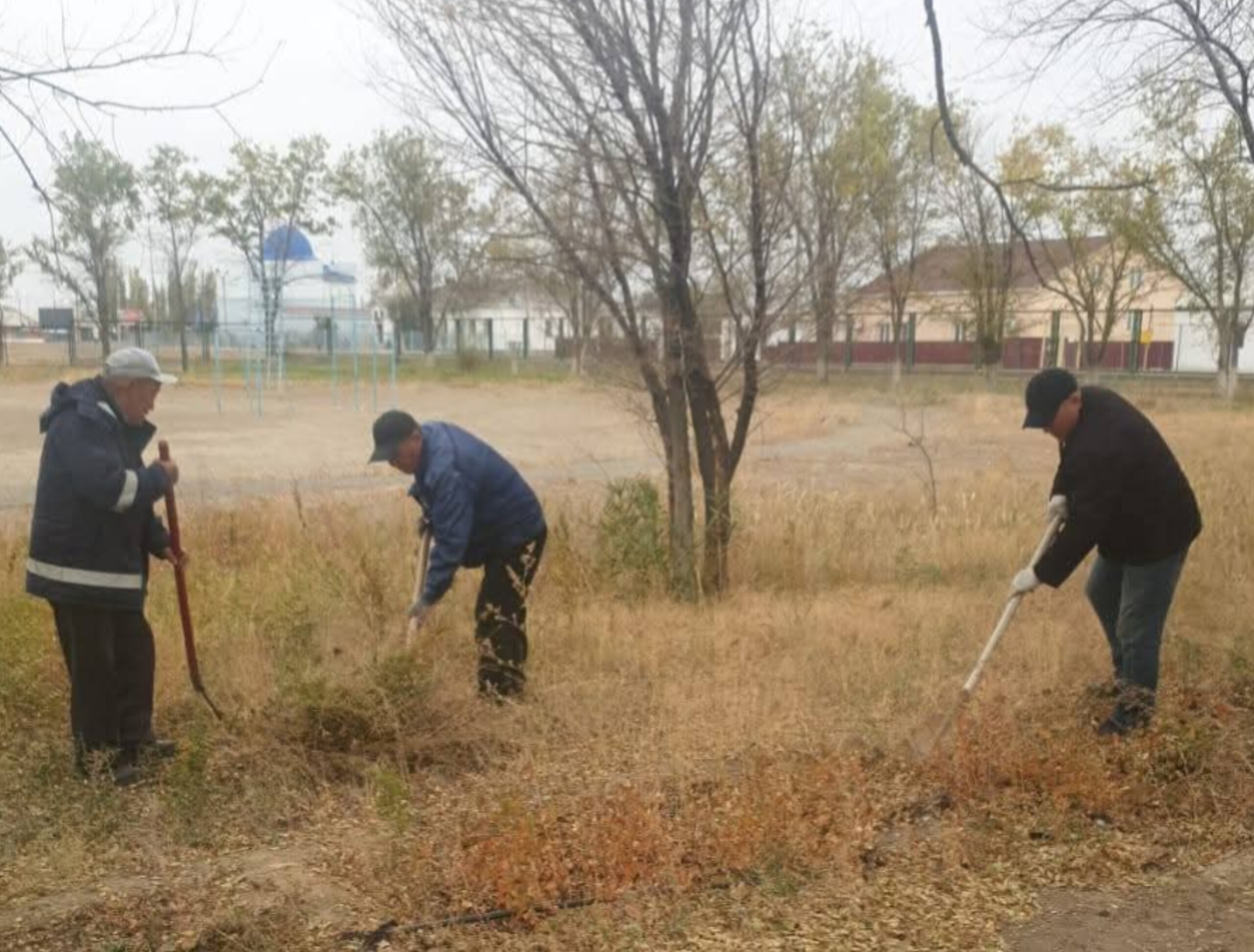 Ағаштардың түбі әктеліп, қоршаулар мен аумақтар ретке келтірілді.