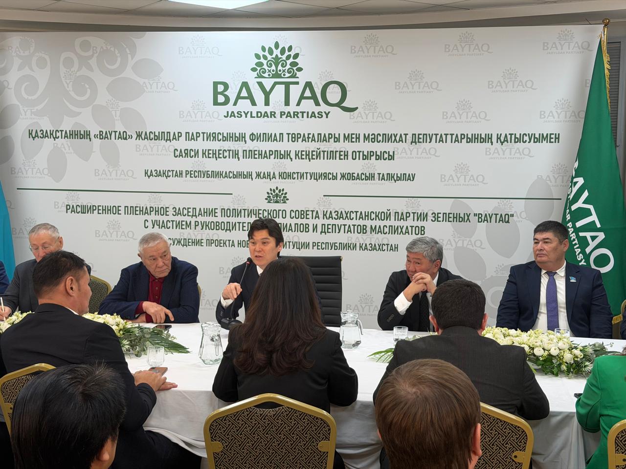 Отырыс қорытындысы бойынша Қазақстанның «БАЙТАҚ» жасылдар партиясы Қазақстан Республикасы Конституциясының жаңа жобасын адамға бағдарланған, экологиялық жауапты және институционалдық тұрғыдан негізделген құжат ретінде толық қолдайтынын мәлімдеді. Партия алдағы уақытта да Конституция жобасын қоғамдық талқылауға белсенді қатысып, өңірлерде түсіндіру және ақпараттық жұмыстарды жүйелі түрде жалғастырады.